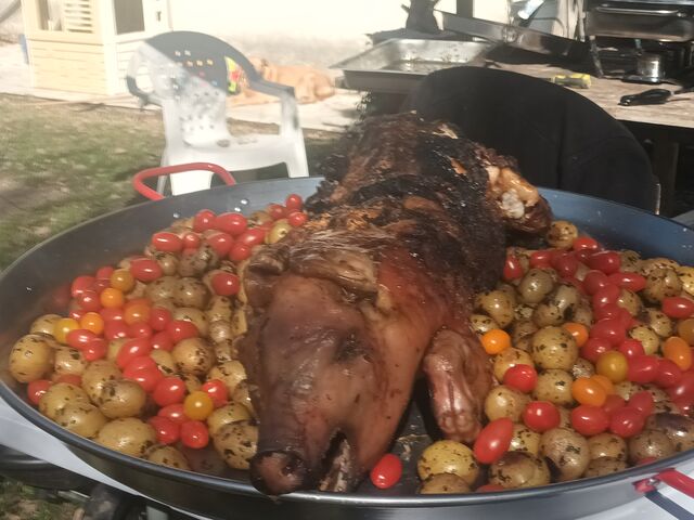 Le ch'ti cochon à le plaisir de participer aux médiévales du Grand pic saint loup à Saint Mathieu de treviers le 07 mai 2023. Pour le plus grand plaisir de vos papilles, avec un jambon à la broche cuit au feu de bois, sa sauce au porto, accompagné de ses pommes de terre grenaille.